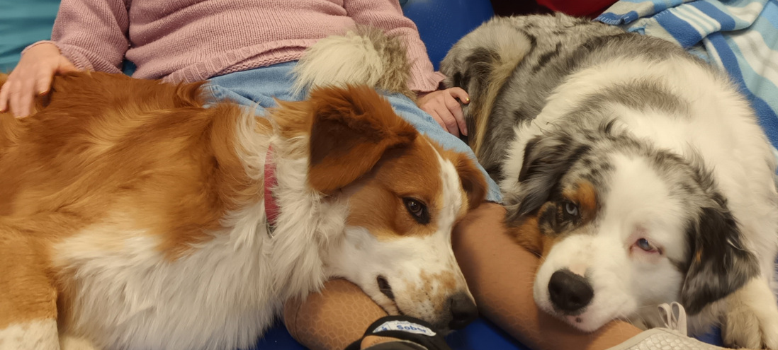 J’exerce cette activité avec mes chiens de berger, éduqués spécifiquement pour cette pratique, Poukie et Socquette.